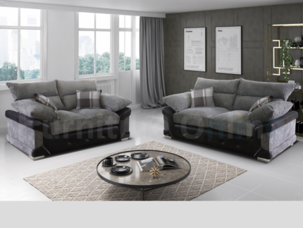 Logan 3+2 Sofa Set Black Grey Jumbo Cord