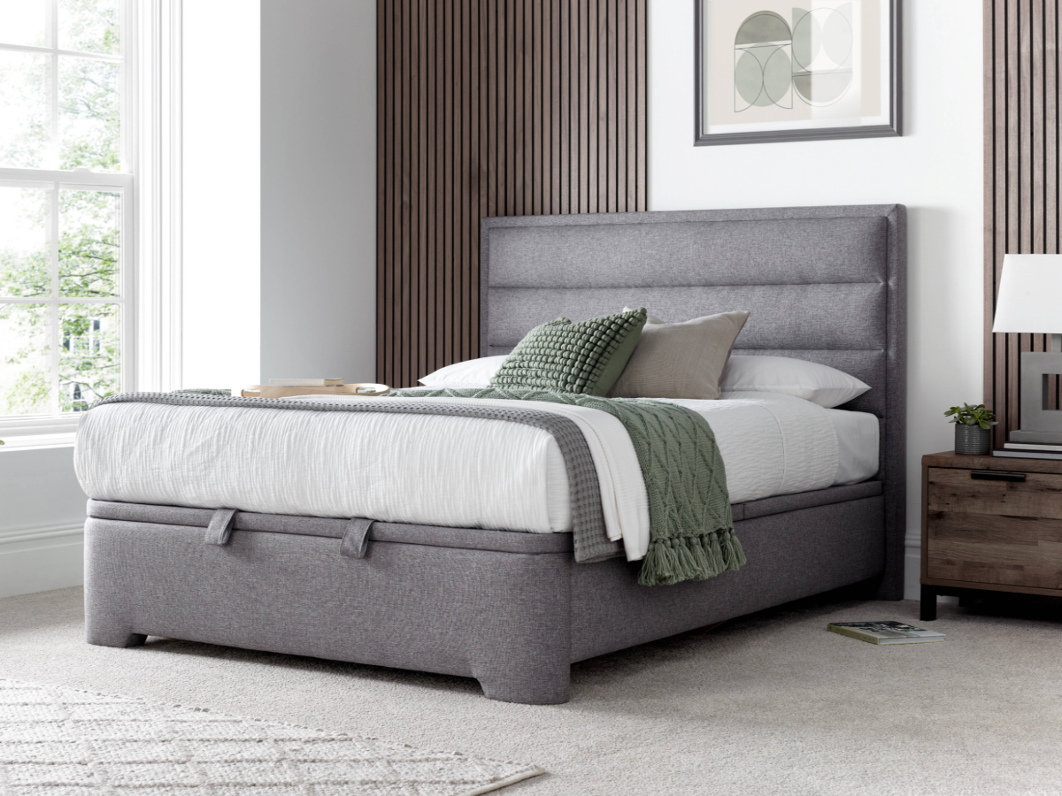 Kaydian Kirkby ottoman storage bed. Panel headboard, gas-lift base. From £1,049. Free UK delivery.