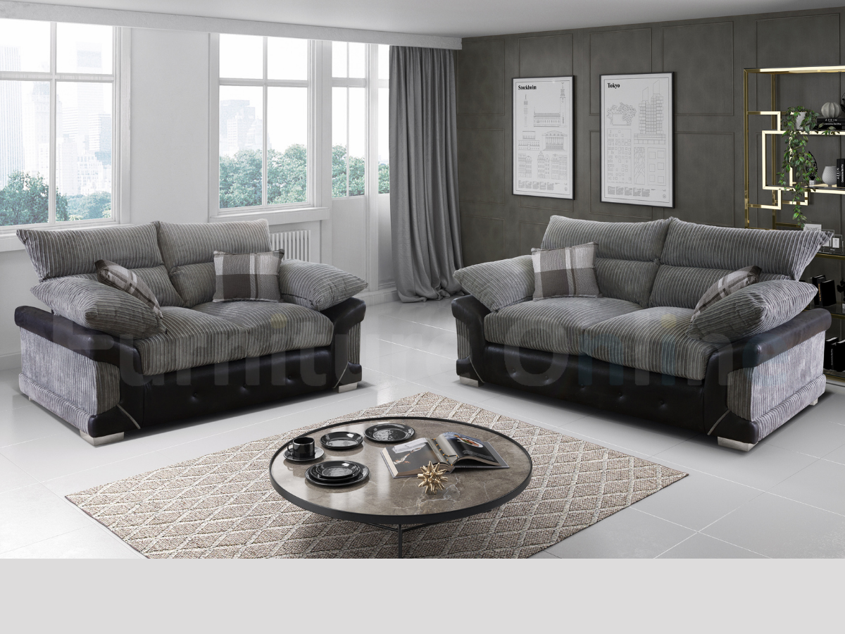 Logan 3+2 Sofa Set Black Grey Jumbo Cord