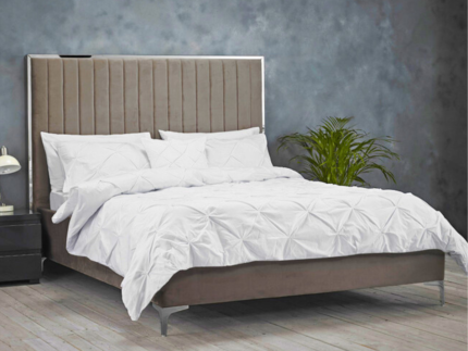 Berkeley Bed Frame Soft Mink Grey Plush Velvet with Headboard