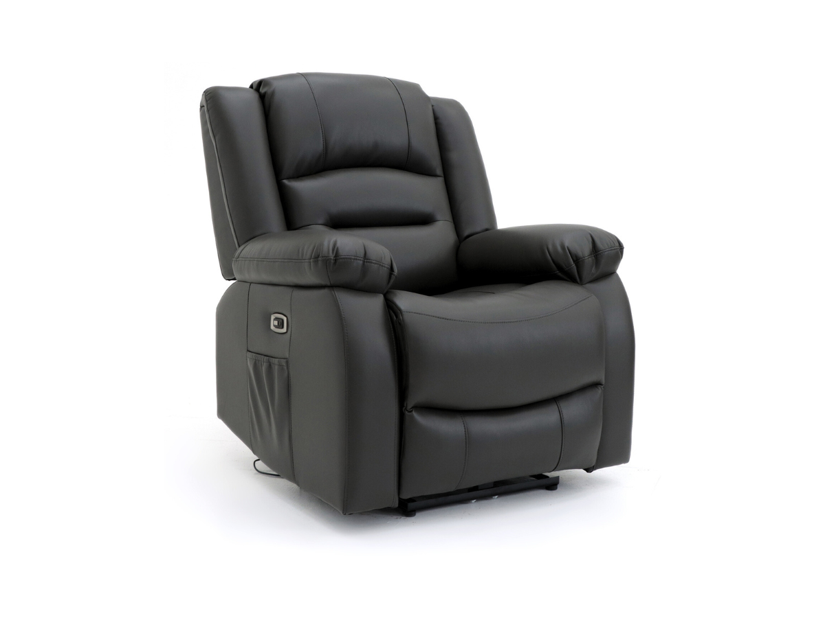 Vinson electric recliner armchair in black or grey Aire leather. USB charging. From £425. Free UK delivery.